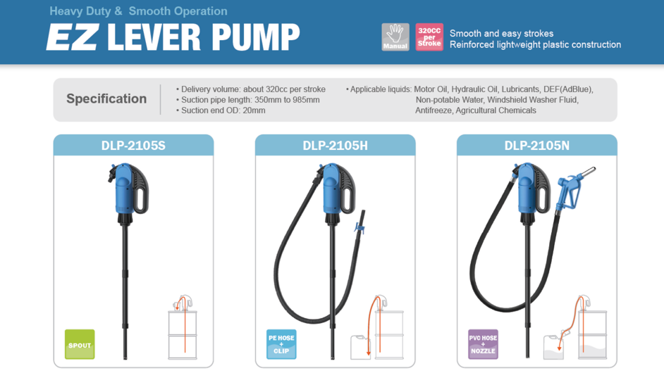 Experience effortless and efficient liquid transfer with our self-priming EZ Lever Pump. Designed with interchangeable outlets, this pump offers unmatched versatility to suit your specific needs. You can choose between a spout, plastic hose, or a robust hose with a nozzle for optimal performance in any application. The airtight barrel design ensures smooth and efficient pumping with optimized strokes, providing an easy pumping experience even when dispensing motor oil. Whether you're handling motor oil or other liquids, our manual lever pump delivers reliable and convenient performance every time.