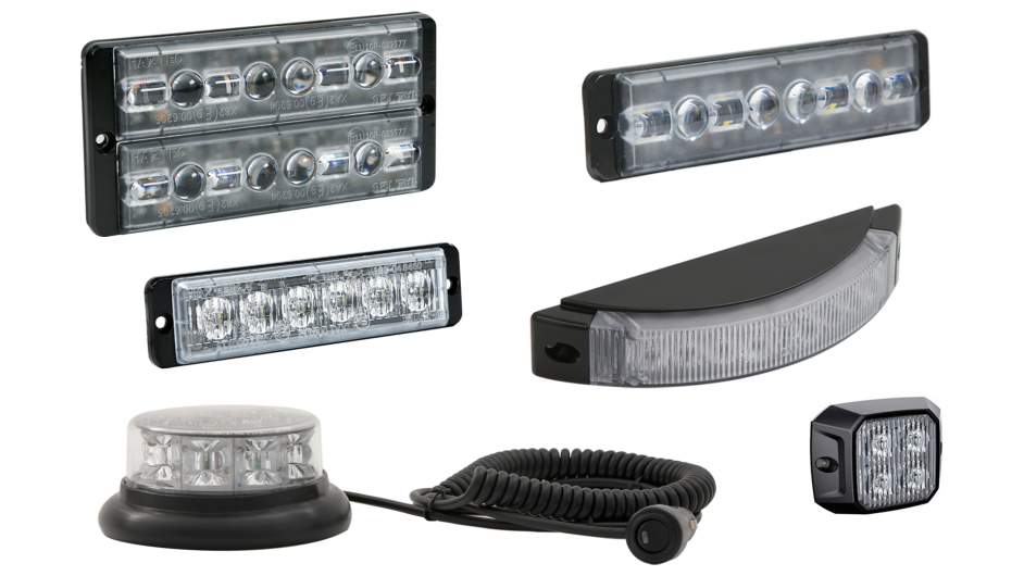 Haztec also offers a wide range of vehicle mounted directional warning lighting, from large format 150x100 or 228x176 mm lights which emit extra warning power to the sides and/or rear of the vehicle, to the latest 4-10026 dual colour R65 certified warning light. This slimline, high output 12LED light is ideal for unobtrusive surface mounting and, being dual colour, reduces the need for separate lights.