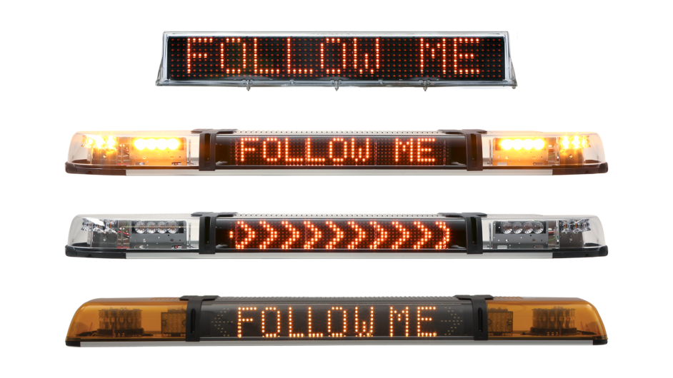 Lightbar lengths range from just 373 mm (15 inches) to 2.4 metres (95 inches) to suit the largest of vehicles, and come with a comprehensive selection of components including: warning, directional arrow, alley, spot and stop/tail/turn lighting modules. You can add extra illumination to the front of the vehicle using high output headlights. Where required lightbars can incorporate an illuminated sign and/or speaker grille. The Xpress lightbar can also contain a programmable LED message sign with up to 99 different messages or a special sign designed for airside use.