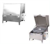 Heavy duty parts washer for automatic multistage cleaning with hot water and biodegradable detergents.