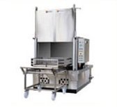 Heavy duty parts washer for automatic multistage cleaning with hot water and biodegradable detergents.