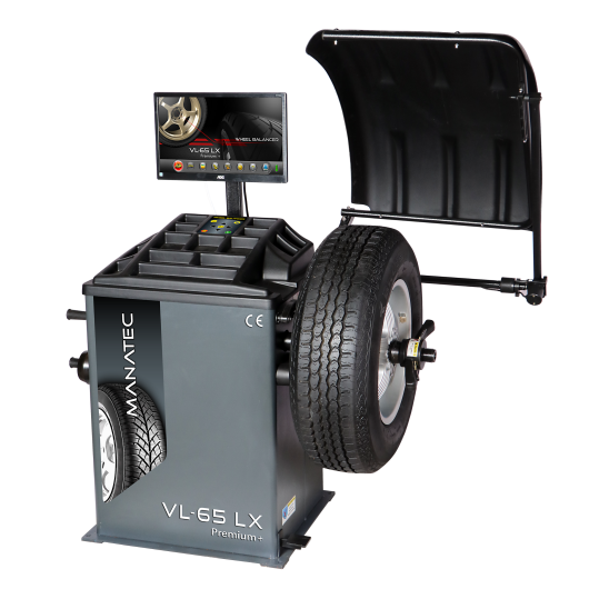 Computergesteuertes Radauswuchtgerät, vollautomatisch mit Großbildmonitor, für PKW, leichte und schwere LKW/Busse.