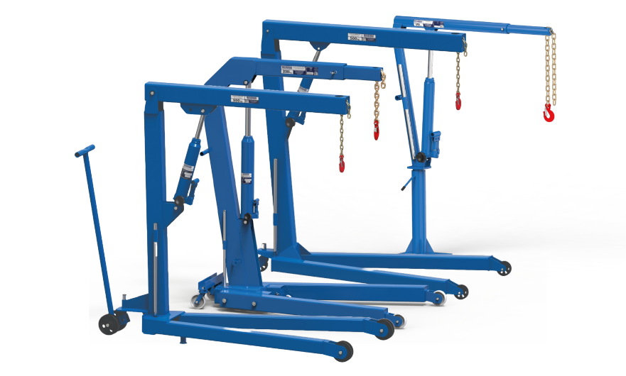 The available models include options with fixed arms, extendable arms, fixed and retractable legs, as well as special winches for truck installation, meeting the specific needs of each application.