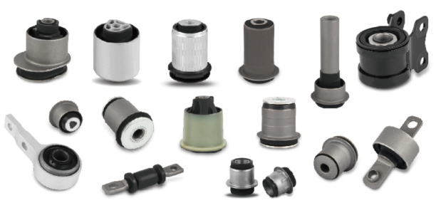 A bushing or rubber bushing is a type of vibration isolator. It provides an interface between two parts, damping the energy transmitted through the bushing. A common application is in vehicle suspension systems, where a bushing made of rubber separates the faces of two metal objects while allowing a certain amount of movement. This movement allows the suspension parts to move freely, for example, when traveling over a large bump, while minimizing transmission of noise and small vibrations through to the chassis of the vehicle. A rubber bushing may also be described as a flexible mounting or antivibration mounting.