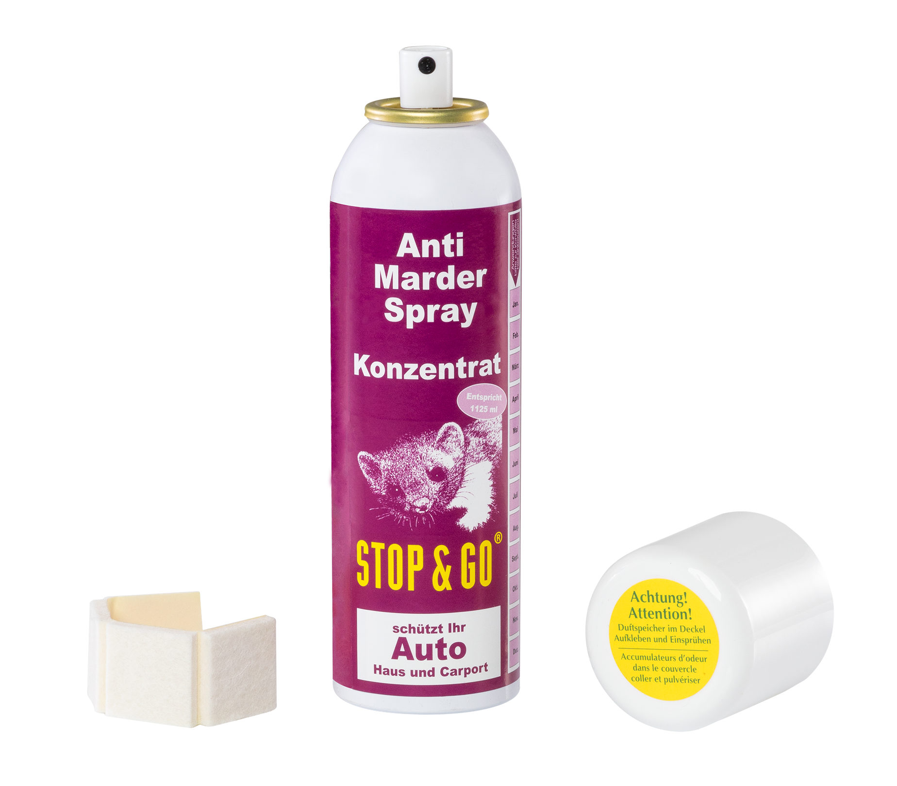 Vor jeder Marderabwehr-Maßnahme dringend zu empfehlen – STOP&GO Duftmarken-Entferner, Art.-Nr. 07503.