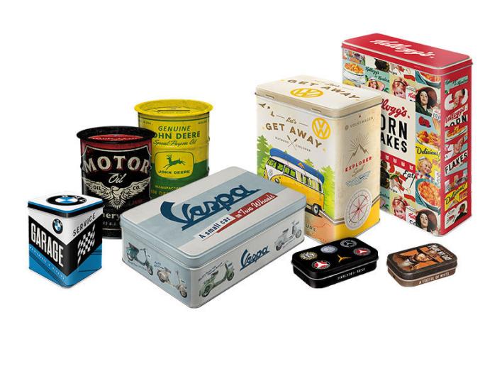 These special tin boxes provide storage and tidiness and adorn any shelf or breakfast table. The popular images are accentuated through brilliant colours and shiny lacquer coating. We offer them in various sizes, so there is room for many different things.