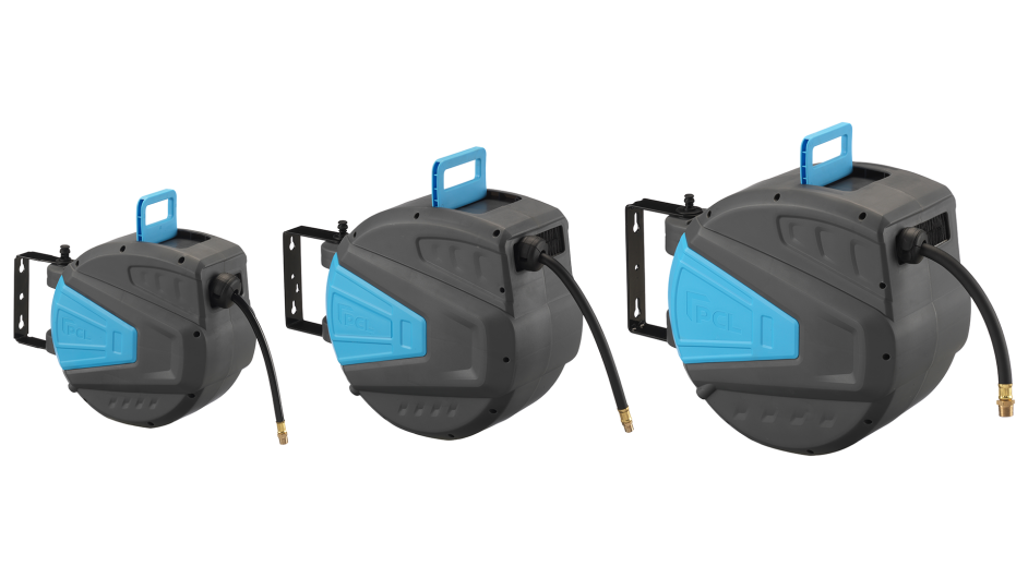 Die Prestige-Schlauchaufroller von PCL sind die größten Aufroller des neuen Sortiments mit einem langsamen Rückzugsmechanismus, der das Risiko von Verletzungen oder Beschädigungen verringert.