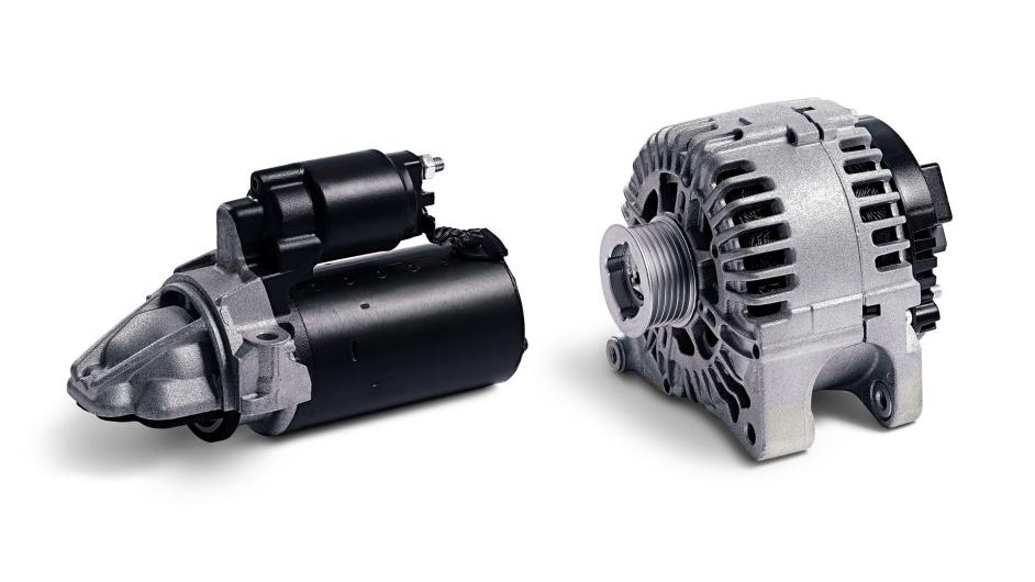 In passenger cars, an alternator provides current that will be used to charge the battery and power the electrical system. The alternator rotor is connected to the internal combustion engine through a belt, and the rotor motion will induce a current in the stator windings. A voltage regulator is in charge of controlling the excitation current passing through the rotor; thus, the output voltage generated. Combined starters/alternators are reversible alternators that can start the internal combustion engine in start/stop systems.