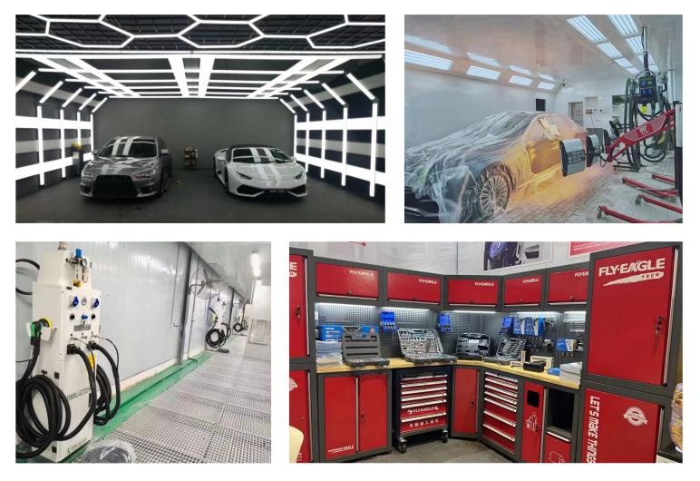 Fahrzeugteilen sowie für Spot-Repair Arbeiten bieten wir die Ausstattung von Vorbereitungsplätzen an mit einer effizienten Luftabsaugung.