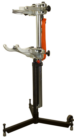 Das Federwerkzeug kann auch bei der Trennung von Achsschenkeln und Federbeinen zur Entlastung der Federbeine verwendet werden. Dies erfolgt direkt im Fahrzeug und reduziert die Arbeitszeit wesentlich. Sicherheitsriemen für mehr Sicherheit! Dank der abnehmbaren Stütze kann mit Hilfe des Werkzeugs auch Druck von unten aufgebracht werden. Dies ist normalerweise bei Arbeiten an Lenkern oder Traggelenken erforderlich. Wird zusammen mit Hydraulikpumpe 1030, 1035 oder 1036 verwendet.