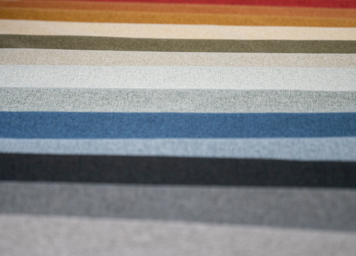 Our range includes over 50 fabric options, from Blackout to Sheers, available in various treatments, widths, and colors. Materials are crafted from 100% polyester, 100% cotton, polyester-cotton blends, and specialized fire-retardant yarns.