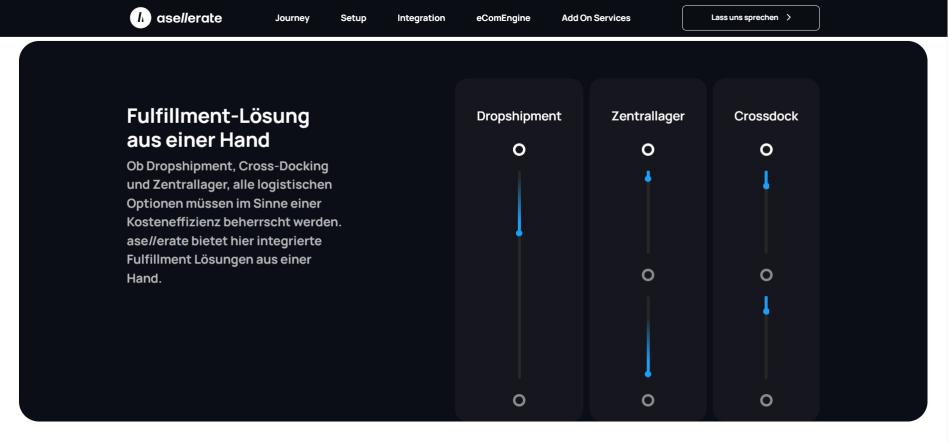 Whether dropshipment, cross-docking or central warehousing, all logistical options must be mastered in terms of cost efficiency. ase//erate offers integrated fulfillment solutions from a single source.