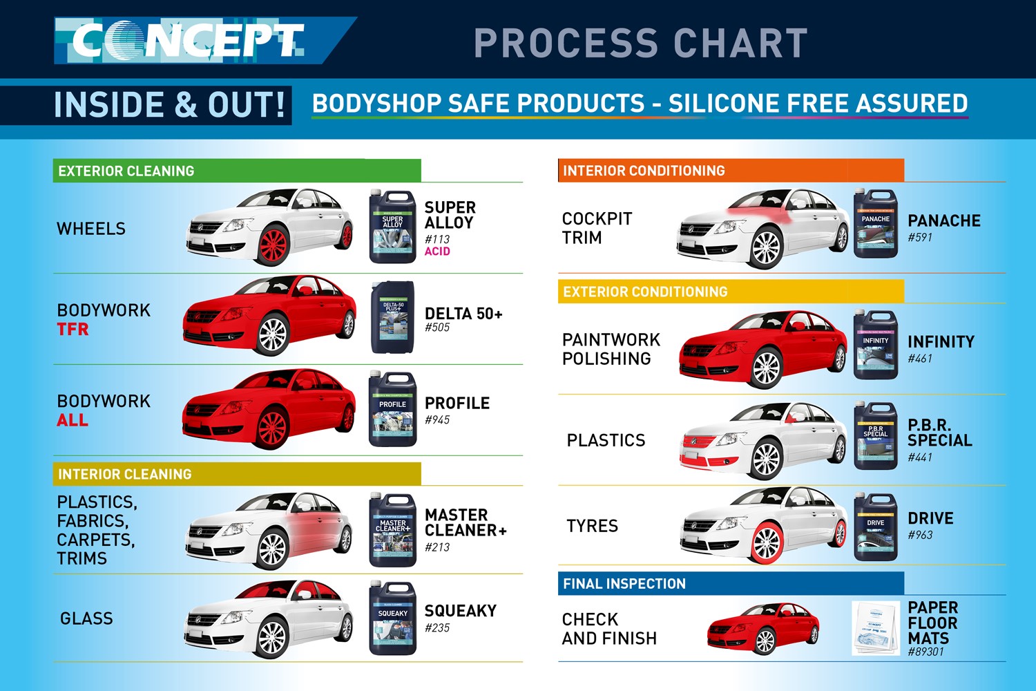 • Paintshop safe, silicone, fillers and wax free