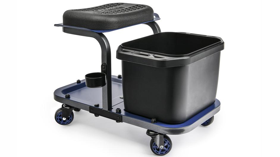 The Rolling Car Wash Stool keeps everything you need at arm’s length while saving your back. Whether you are detailing your car, cleaning, painting, or gardening, there is plenty of space to hold your essentials.