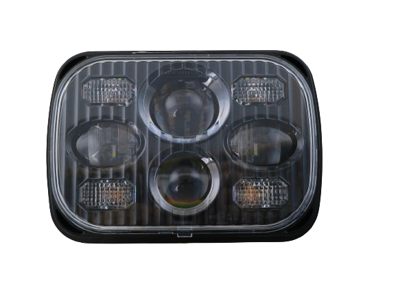 5x7 inches rectangular, multi-functional headlight with integrated High Beam, Low Beam, DRL, and Direction Indicator, four functions in one compact design.