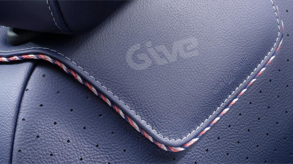 Upper backrest piece fitted under the headrest, supporting stamped or embroidered personalization, used for limited editions. Available in woven fabric, faux leather or leather.