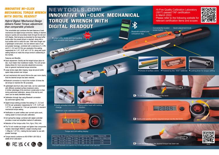 Digital torque setting provides fine setting 0.1, 0.2 and 0.5 Nm per graduation respectively for 1/4”, 3/8” and 1/2” Dr., as opposed to 1 Nm per graduation in standard mechanical torque setting.