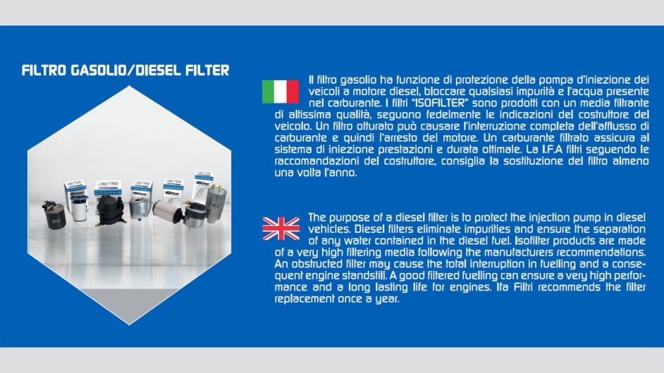 The oil filter, oil filter into separate spin on and oil filter cartridge, is designed to continuously clean the oil, removing impurities such as abrasive particles due to normal wear of the dust and debris burning. The oil filter is a product that requires high technical quality to ensure a smooth functioning of the product. Filters ISOFILTER whose function is to ensure the free flow of oil into the circulation, essential for maintaining performance and prolonging the duration of engine life. To achieve this you must replace the oil filter at regular intervals as recommended by the vehicle manufacturer, the IFA suggests replacing the filter at each oil change or at least once a year.