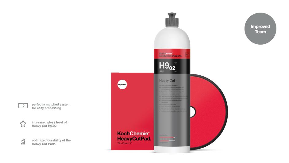 Our Heavy Cut system has received an update. The result: A Heavy Cut H9.02 with a higher gloss level and a tuned Heavy Cut Pad with improved durability.