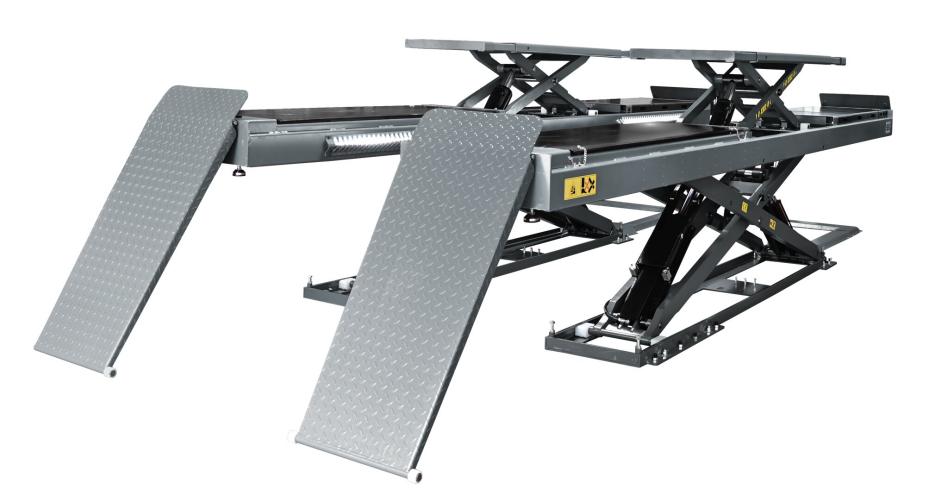 With a lifting capacity of 5.5 t, the TLT-855 A scissor lift is just as heavy-duty as the TLT-455 W 4-post lift. The TLT-855 A lift can lift any type of vehicle weighing up to 5,500 kg and is also suitable for wheel alignment, vehicle testing, maintenance and vehicle care. The lift is suitable for both underfloor (optional set) and overfloor mounting.