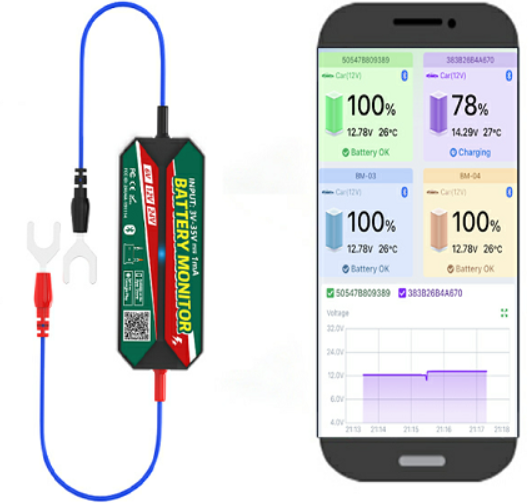10. Store histrical data in device up to 72 days (voltage, charge percentage and temperature). Save the data every 2 minutes, The historical data will not be lost when the device loses power