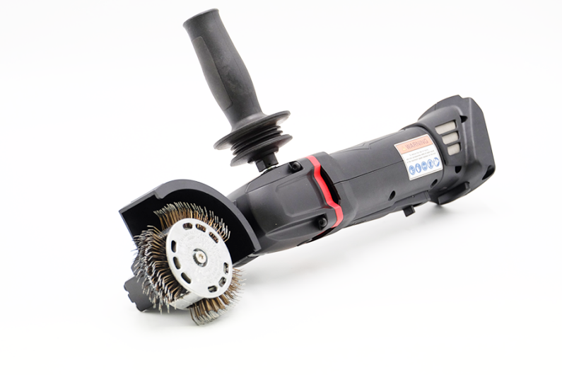 The vibration of the wire bristles (occurring when the bristles first strike the target surface) is absorbed by the air-cushion. The bristles re-strike the surface, immediately following the first strike, dampening any remaining vibration and briefly stopping & releasing the bristles. Another full-rotation of the bristles and maximum kinetic energy is applied at the initial strike.