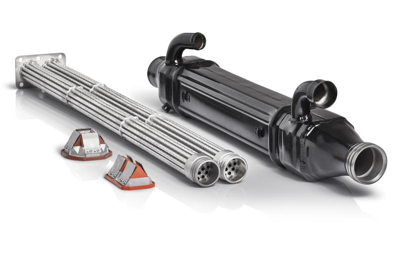 COMPONENT FUNDAMENTALS The EGR cooler is a water-to-air heat exchanger that routes exhaust gases between the turbo and the EGR valve. It is often integrated with the EGR module. Inside the cooler’s housing are a series of tubes for the hot exhaust gas flow. A cooling coat surrounds the tubes, passing the engine coolant through them. ECU-governed EGR valve controls the flow of the exhaust gases through the EGR cooler.