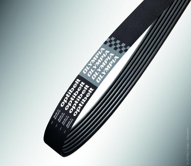 To withstand these enormous loads, optibelt OLYMPIA Mild Hybrid Ribbed Belts are made with high performance aramid cords and EPDM mixtures reinforced with aramid fibres.