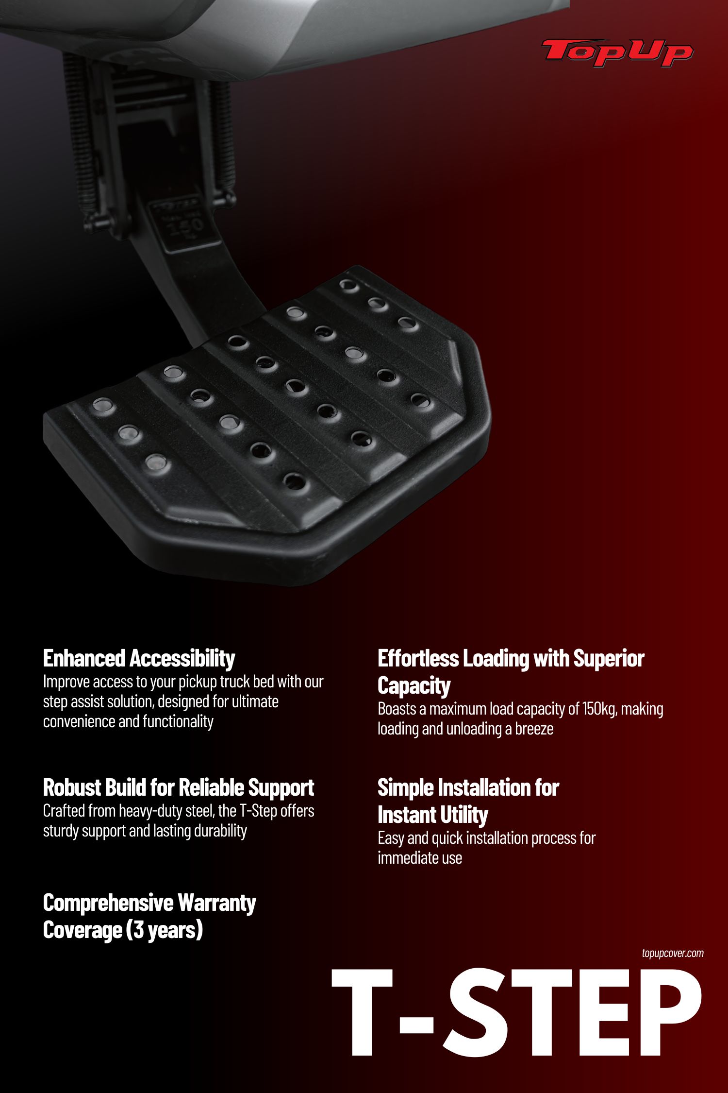 Improve access to your pickup truck bed with the T-Step Assist Step by TOPUP. Designed for ultimate convenience and functionality, it makes entering and exiting your truck bed effortless.