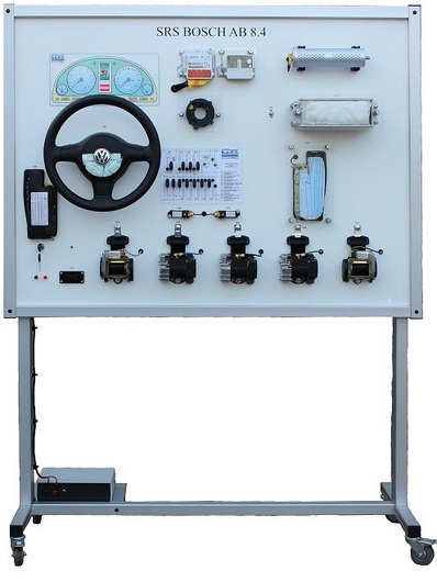 Training board is equipped with a safety SRS BOSCH AB 8.4 (Airbag) system that includes four air bags, crash sensors, mechanism of air bag steering wheel module and spiral cable, front seat belts with igniters and tensioners, rear seat belts and two control units;