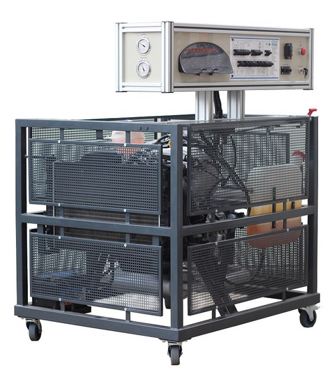 - The stand has a closed structure – internal wiring is not visible; Instrument cluster, measurement and fault simulation panel is integrated in a closed aluminum frame construction;