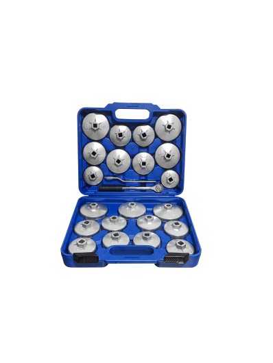 Material: aluminum Support OEM production 23 pieces Oil filter wrench set made of die-cast aluminum Professional range in industrial quality, all caps made from die-cast aluminium Inserts with holder for 1/2" ratchet wrench and 27mm ring wrench (included) Suitable for almost all common oil filters